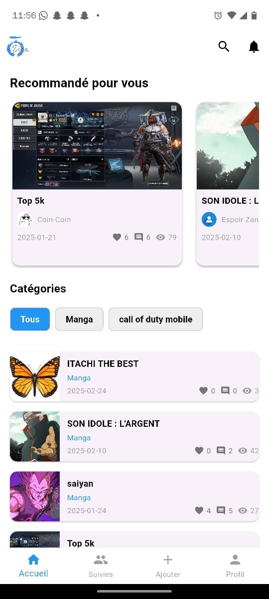Weblog est une plateforme communautaire moderne permettant de publier, découvrir et interagir avec du contenu facilement. Articles, commentaires et réactions favorisent l’échange d’idées. Les utilisateurs peuvent suivre leurs créateurs préférés et recevoir des notifications en temps réel. La modération et la sécurité sont assurées grâce à un système de signalement et des actions administratives. Conçue pour être rapide et intuitive sur mobile, Weblog utilise Flutter pour l’interface, Firebase pour l’authentification, Firestore et FCM pour les données et notifications, ainsi que Cloudinary pour la gestion des médias, offrant ainsi une expérience sociale complète et fluide où chaque voix compte.